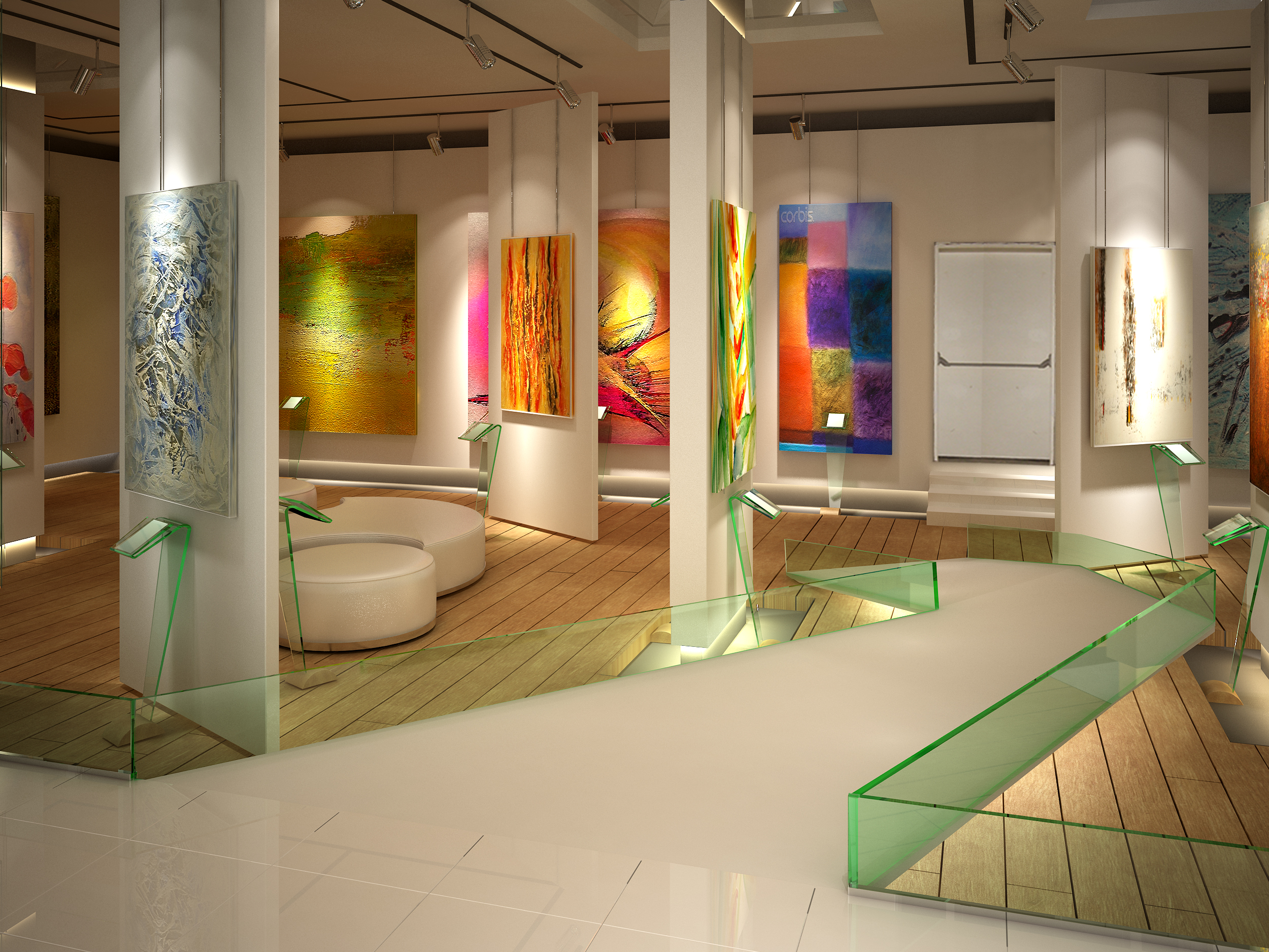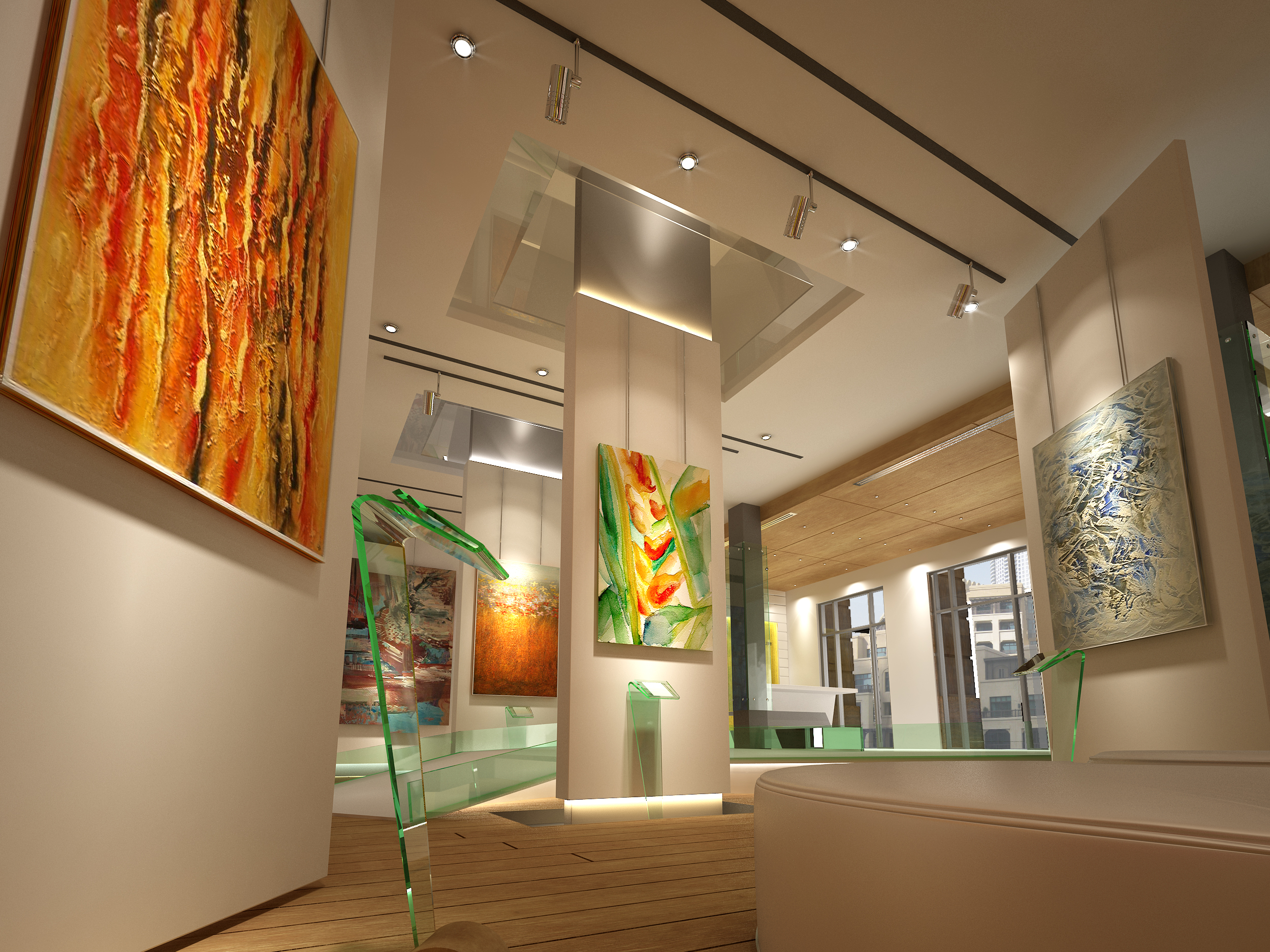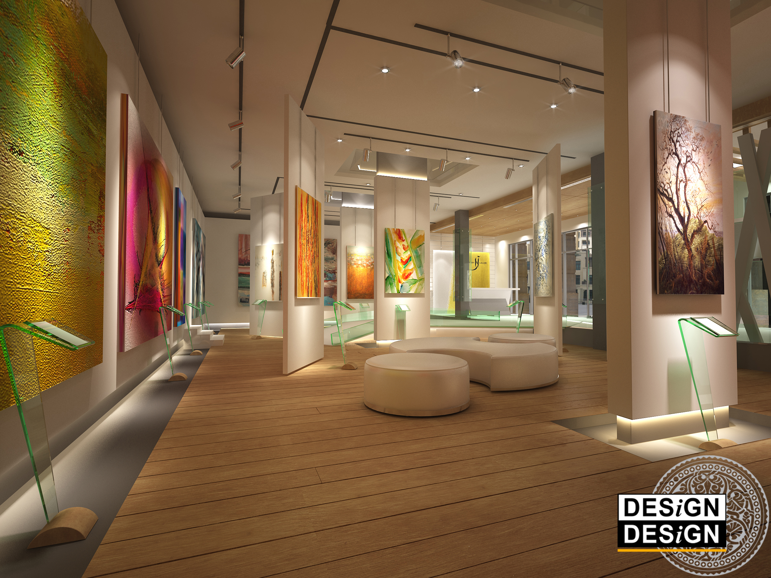 An environment that promotes serenity and calmness… Emphasis is made to the background finishing materials: Parquet floor invites the visitors to slow their moving while traveling in the pace, depressed floors along the display walls draw the distance between the viewers and the artwork, specialized lighting washes the paintings with adequate brightness. The environment features a pleasant setting that does not overwhelm the exhibited Art Work.