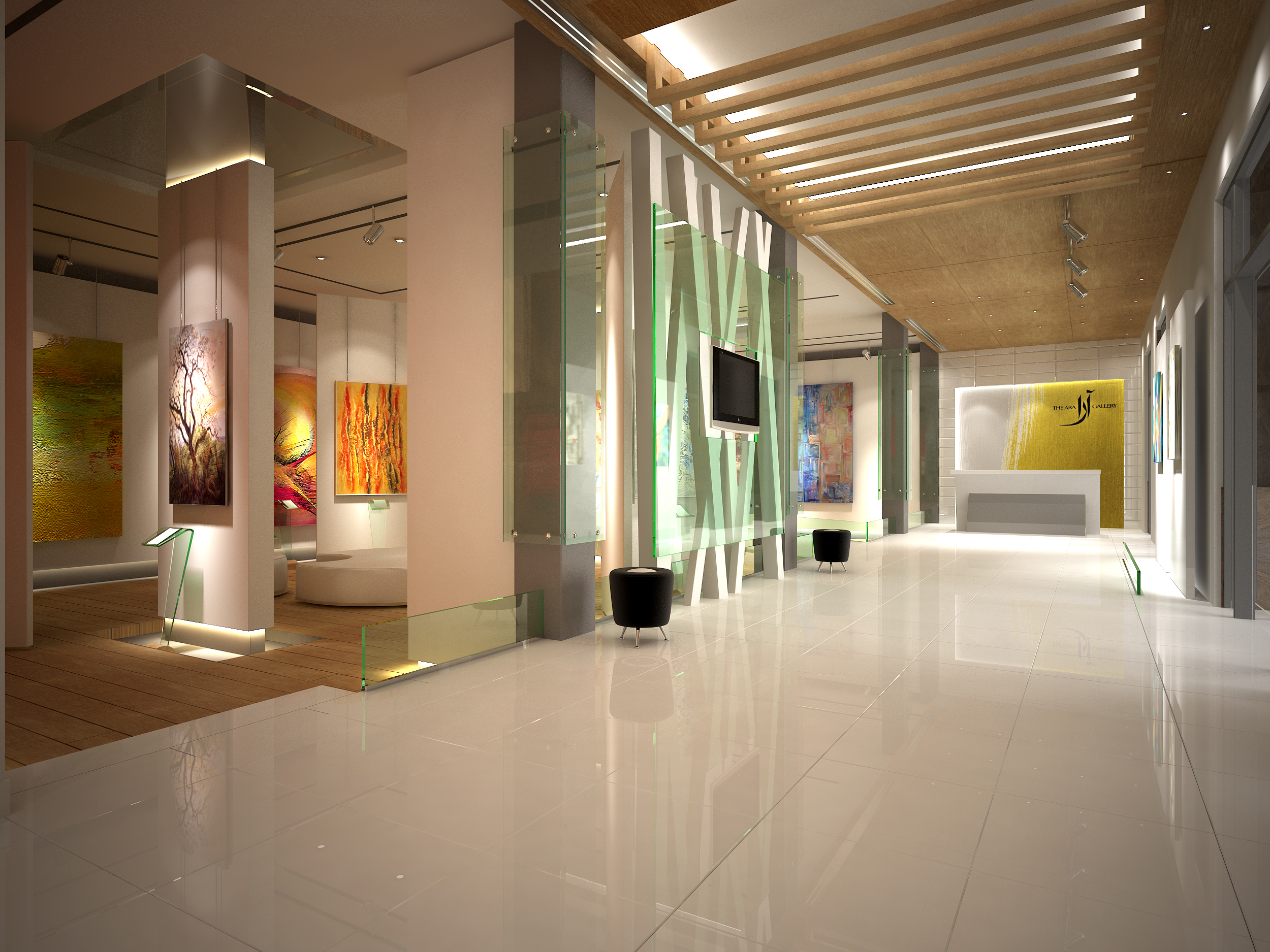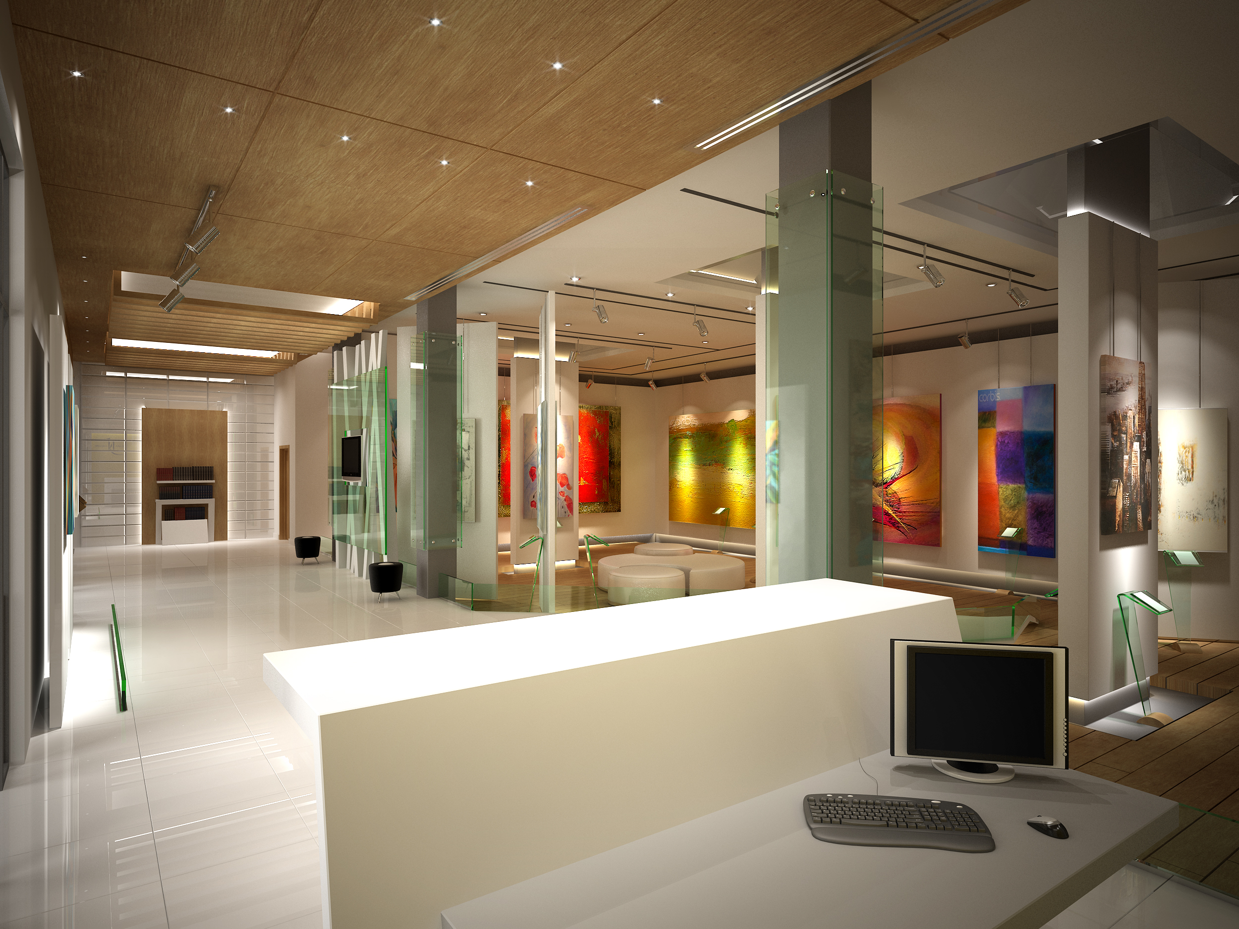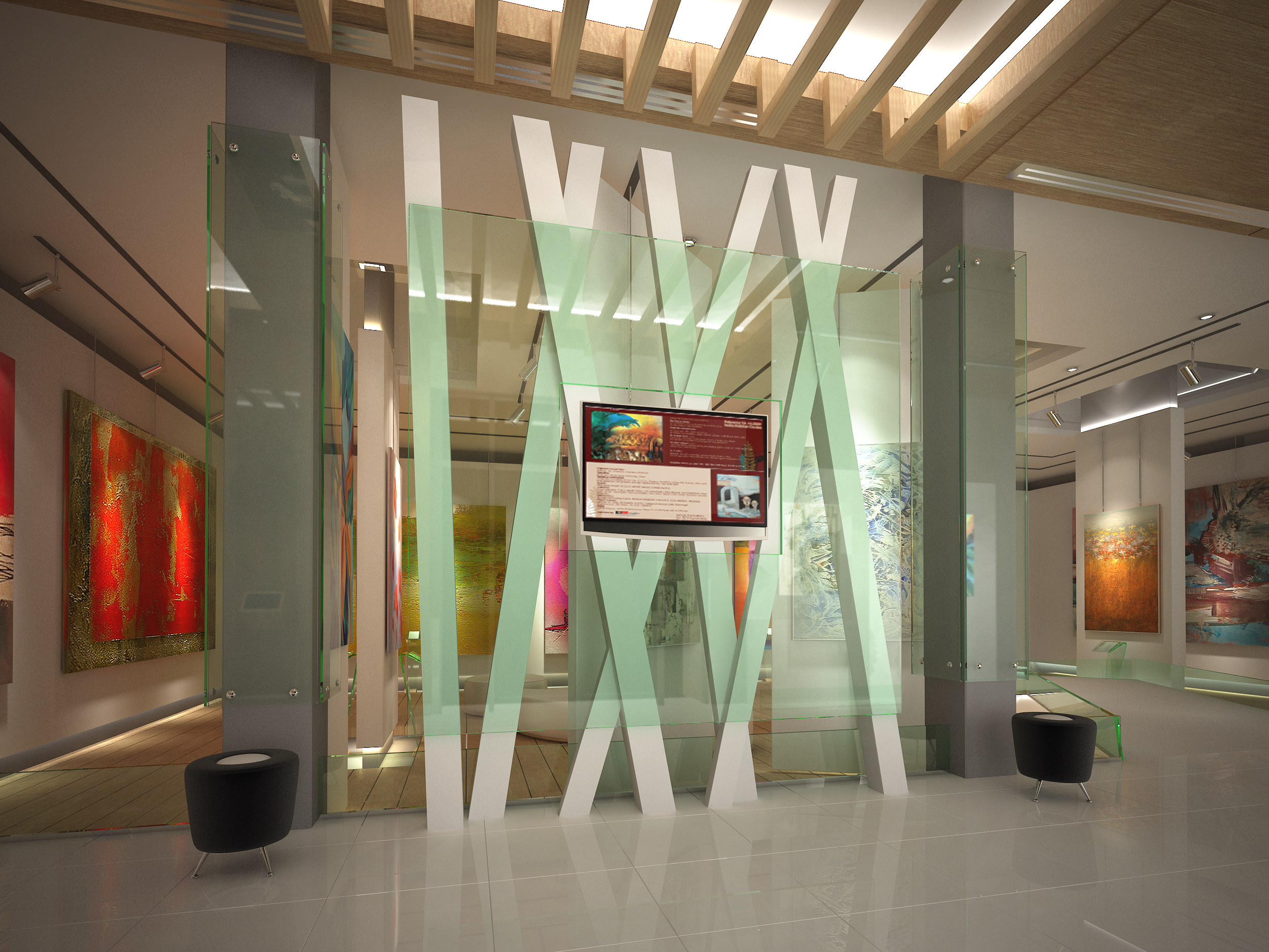 An environment that promotes serenity and calmness… Emphasis is made to the background finishing materials: Parquet floor invites the visitors to slow their moving while traveling in the pace, depressed floors along the display walls draw the distance between the viewers and the artwork, specialized lighting washes the paintings with adequate brightness. The environment features a pleasant setting that does not overwhelm the exhibited Art Work.