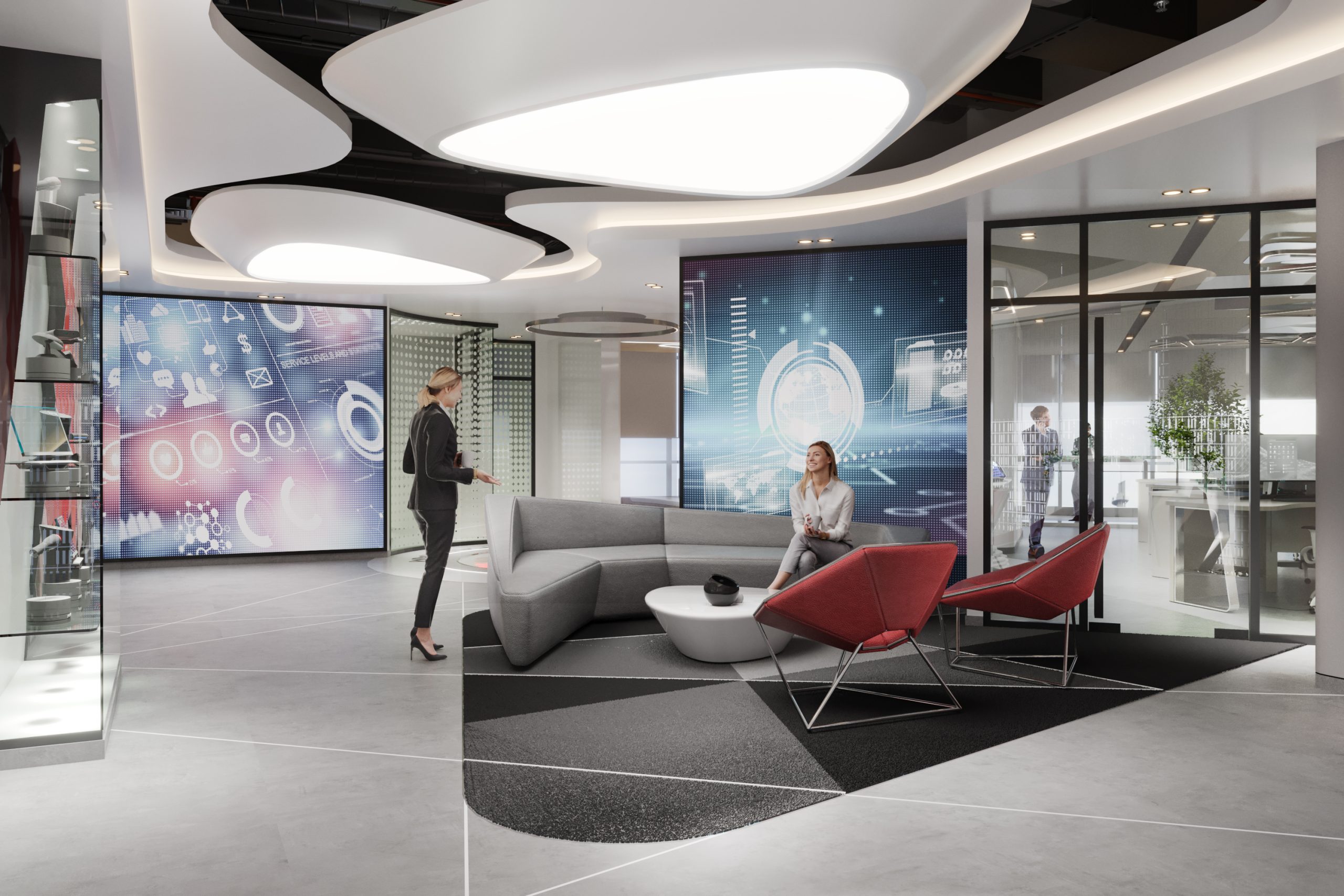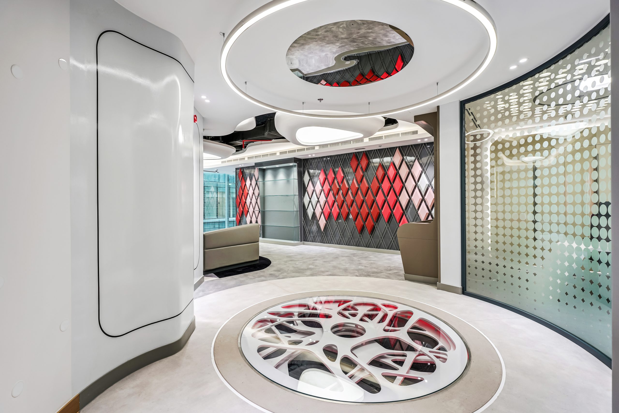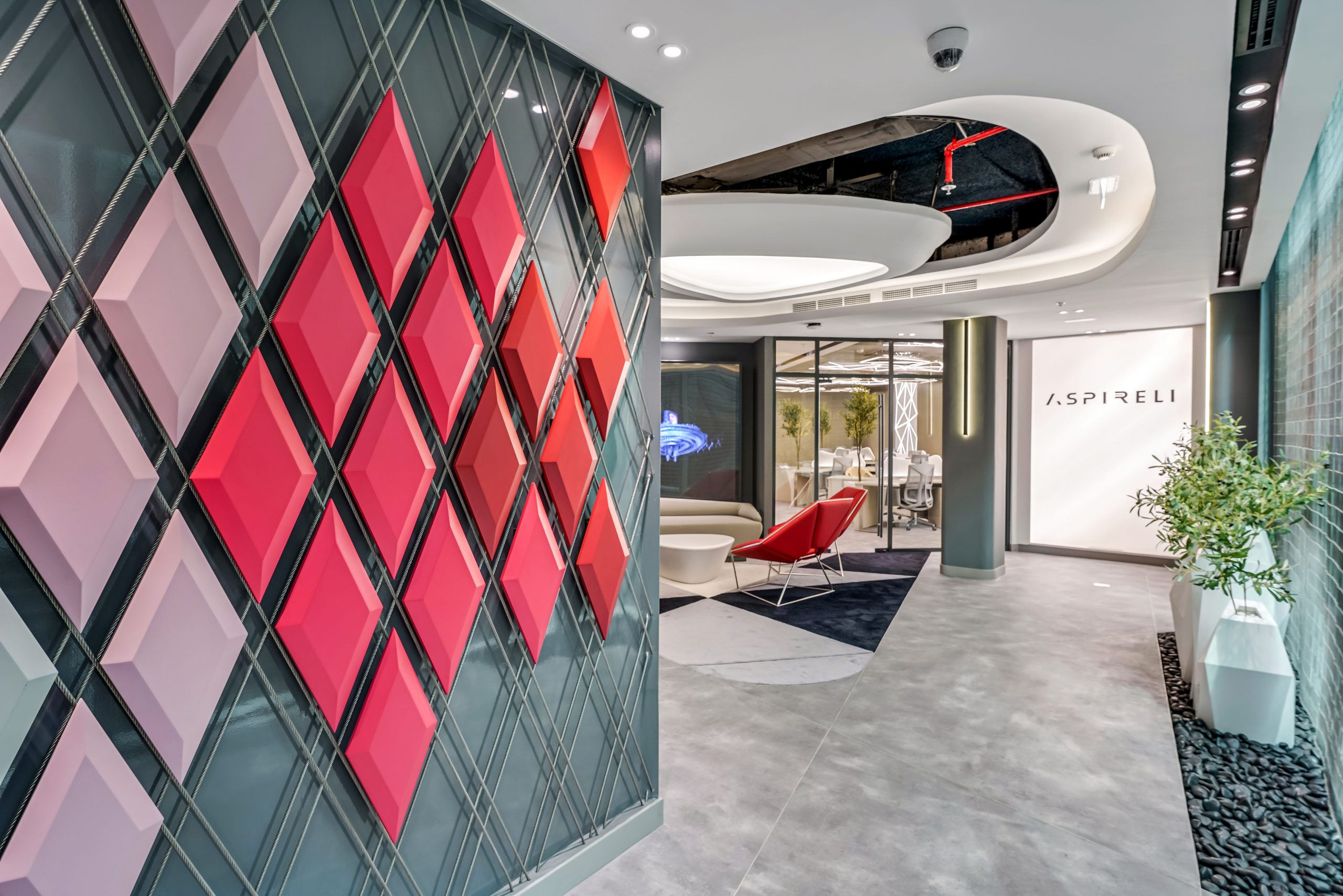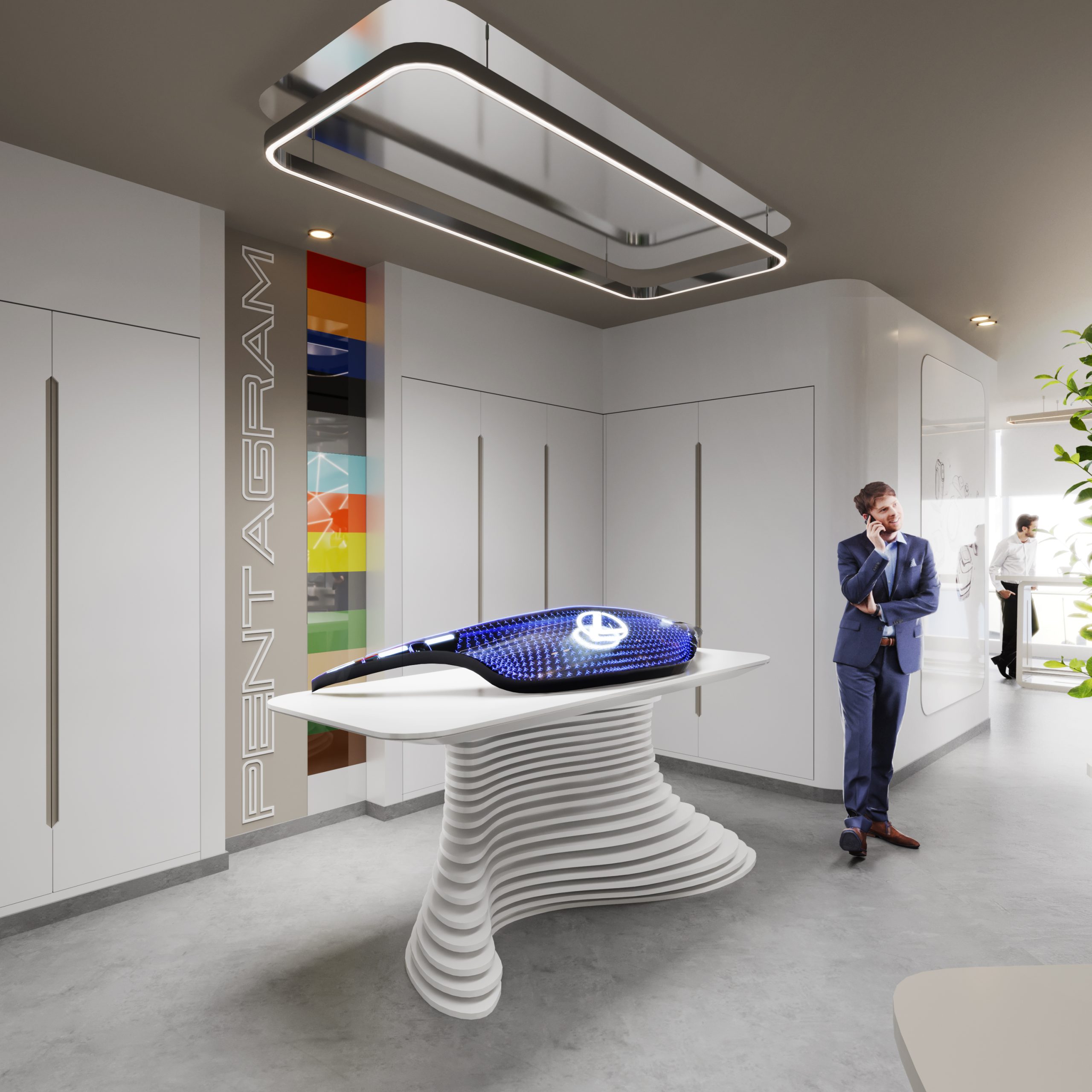 Aspireli is a leading organization in the industry of gadgets for elite automotives. The Innovation Centre should reflect the unique and trendy services of the company, projecting a dynamic, creative and sophisticated interior.