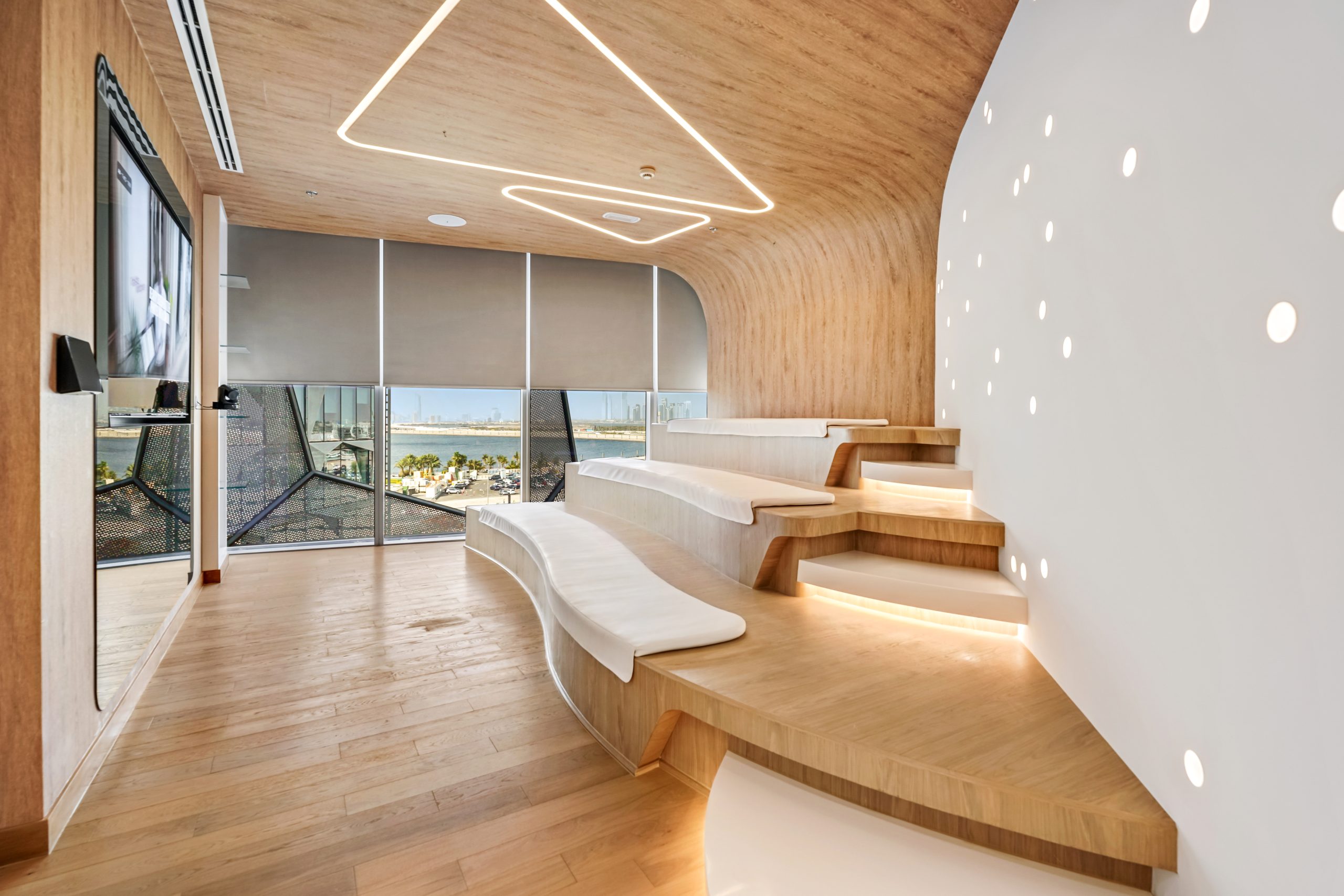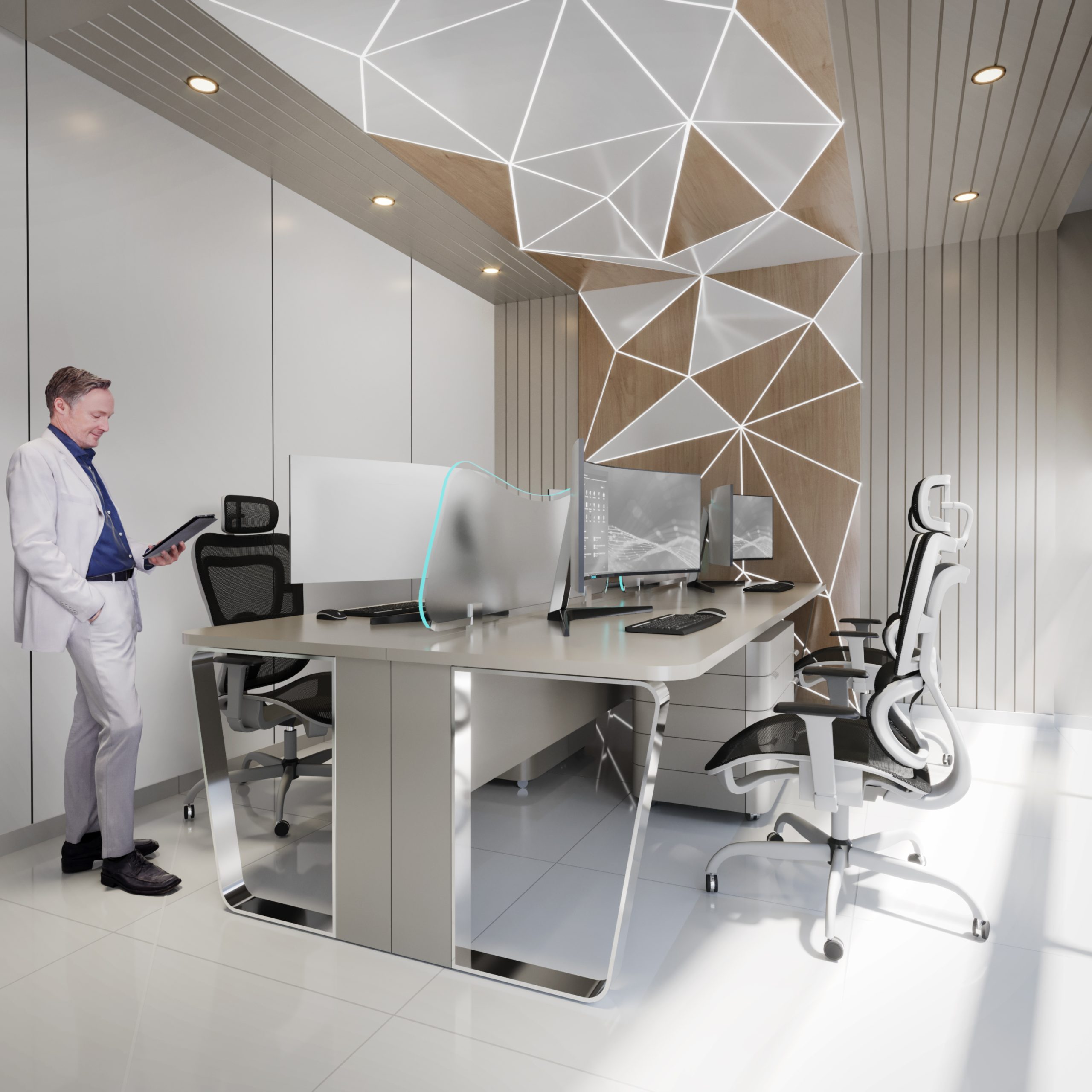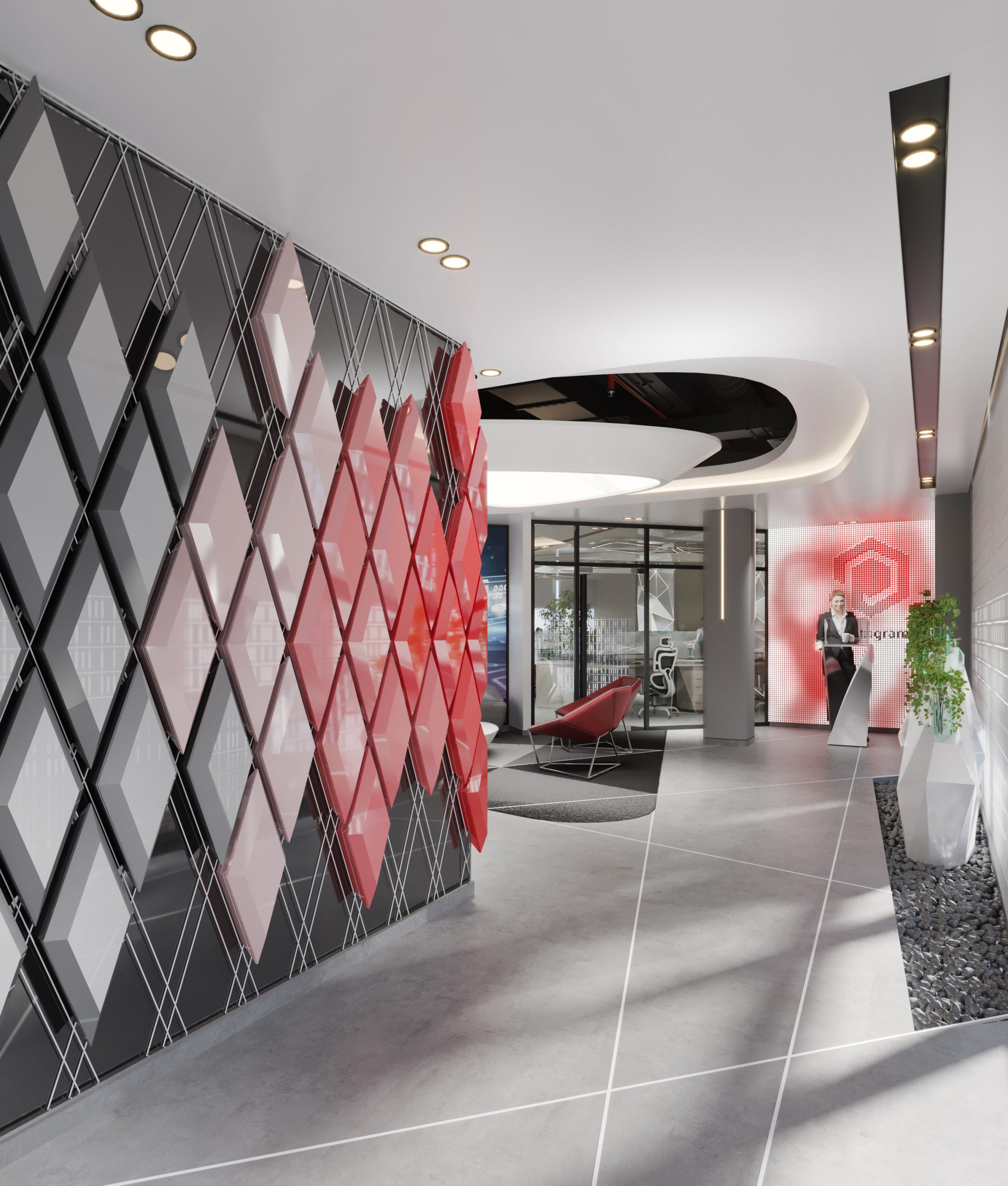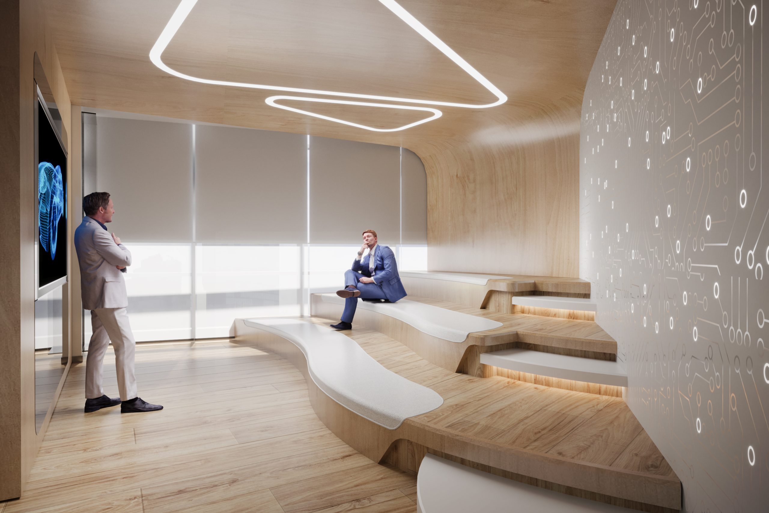 Aspireli is a leading organization in the industry of gadgets for elite automotives. The Innovation Centre should reflect the unique and trendy services of the company, projecting a dynamic, creative and sophisticated interior.