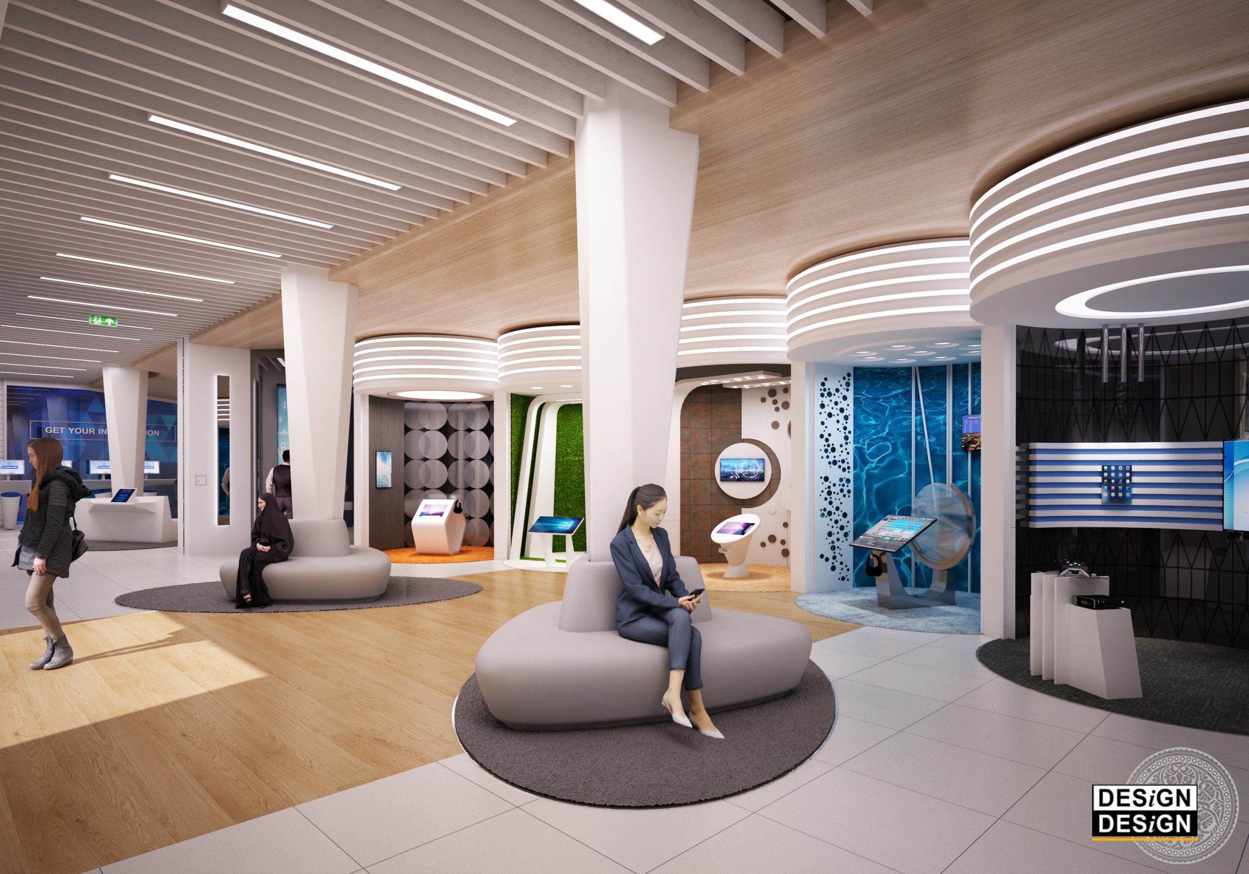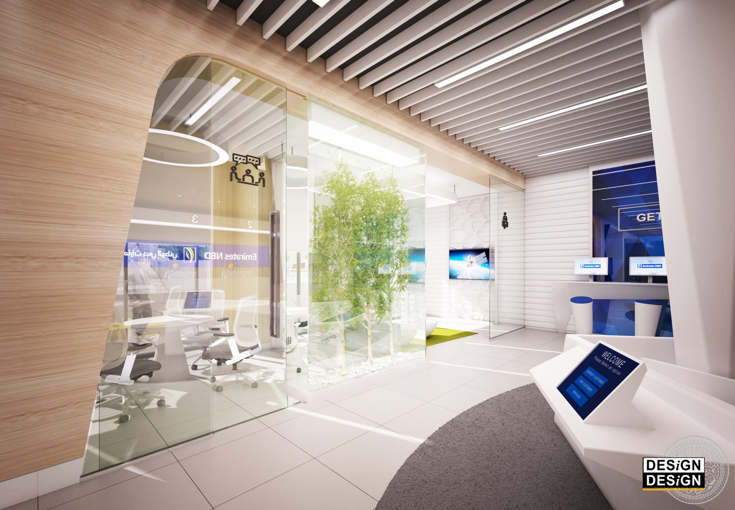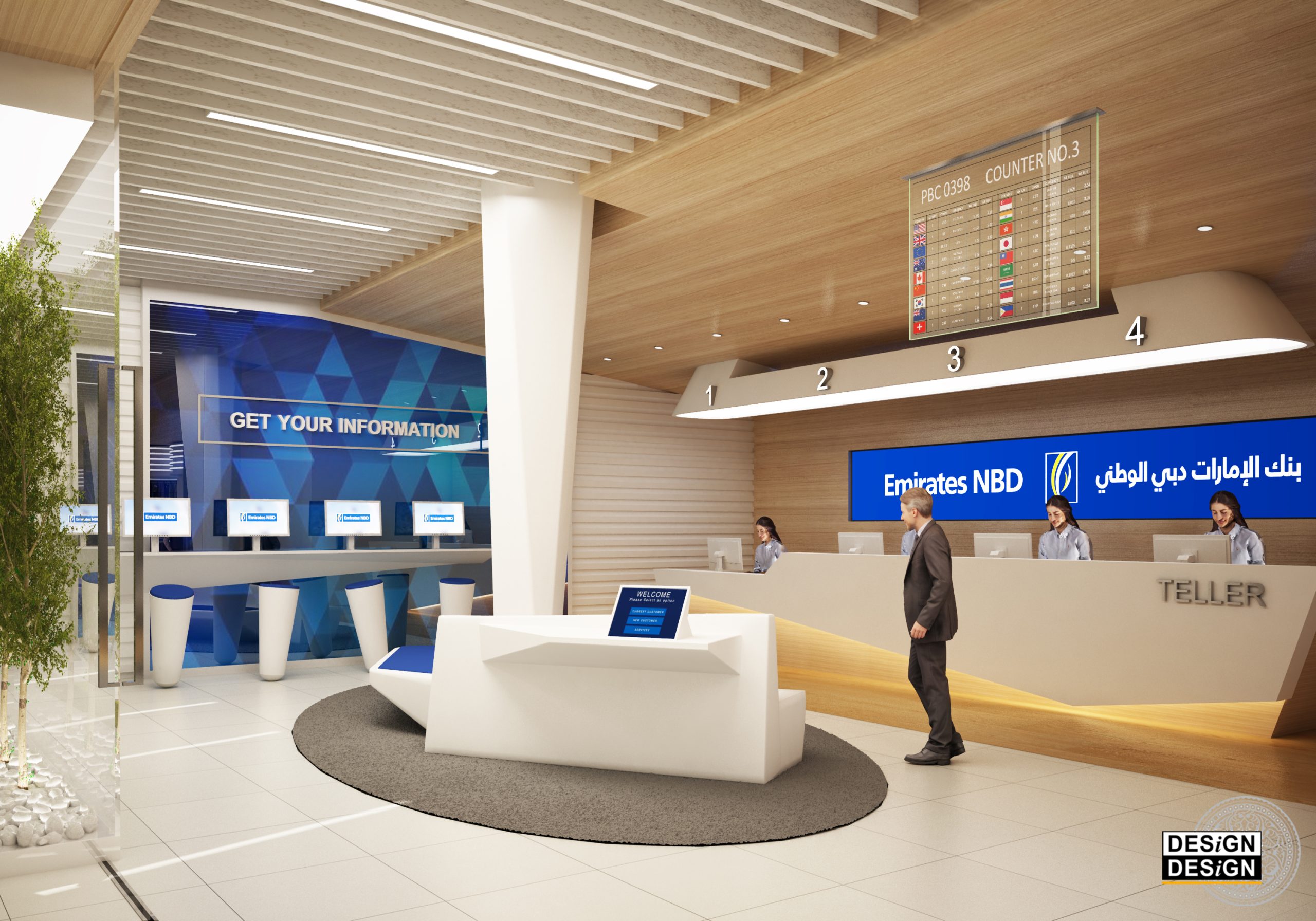 The project features a unique collaboration between Emirates NBD, Emirates Islamic Bank and five of their globally recognized banking partners instilling their presence over 4,134 square feet of floor space in the welcome plaza of EXPO 2020. The design is a representation of the future of banking decorated with intelligent exhibitions of yet to be seen technologies and applied sciences in the role of the business world.