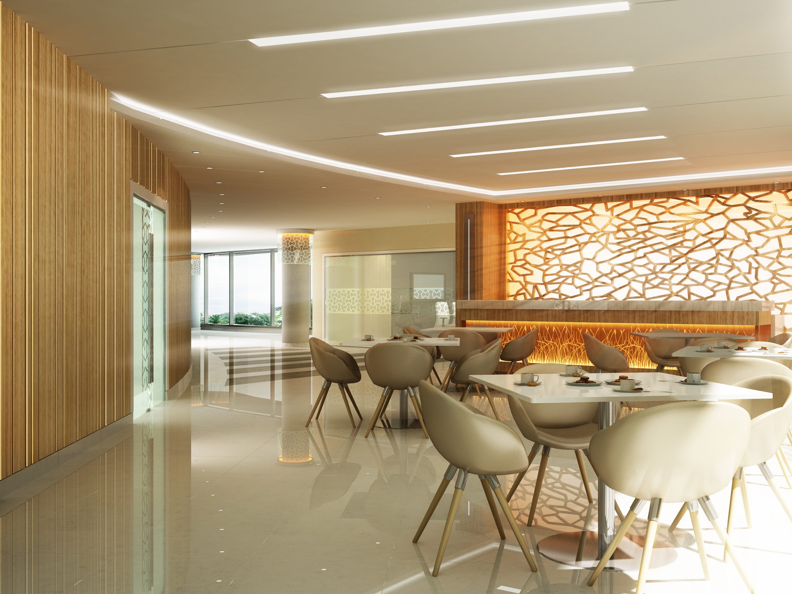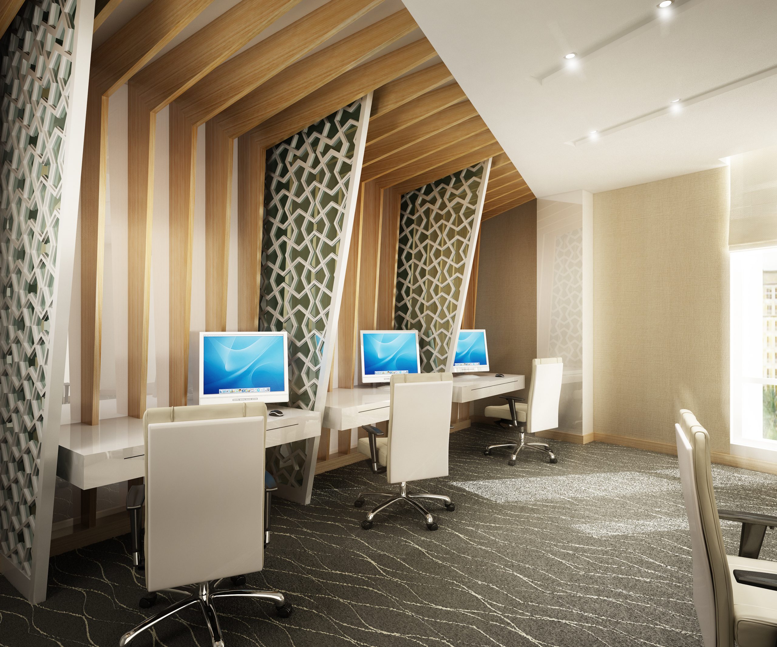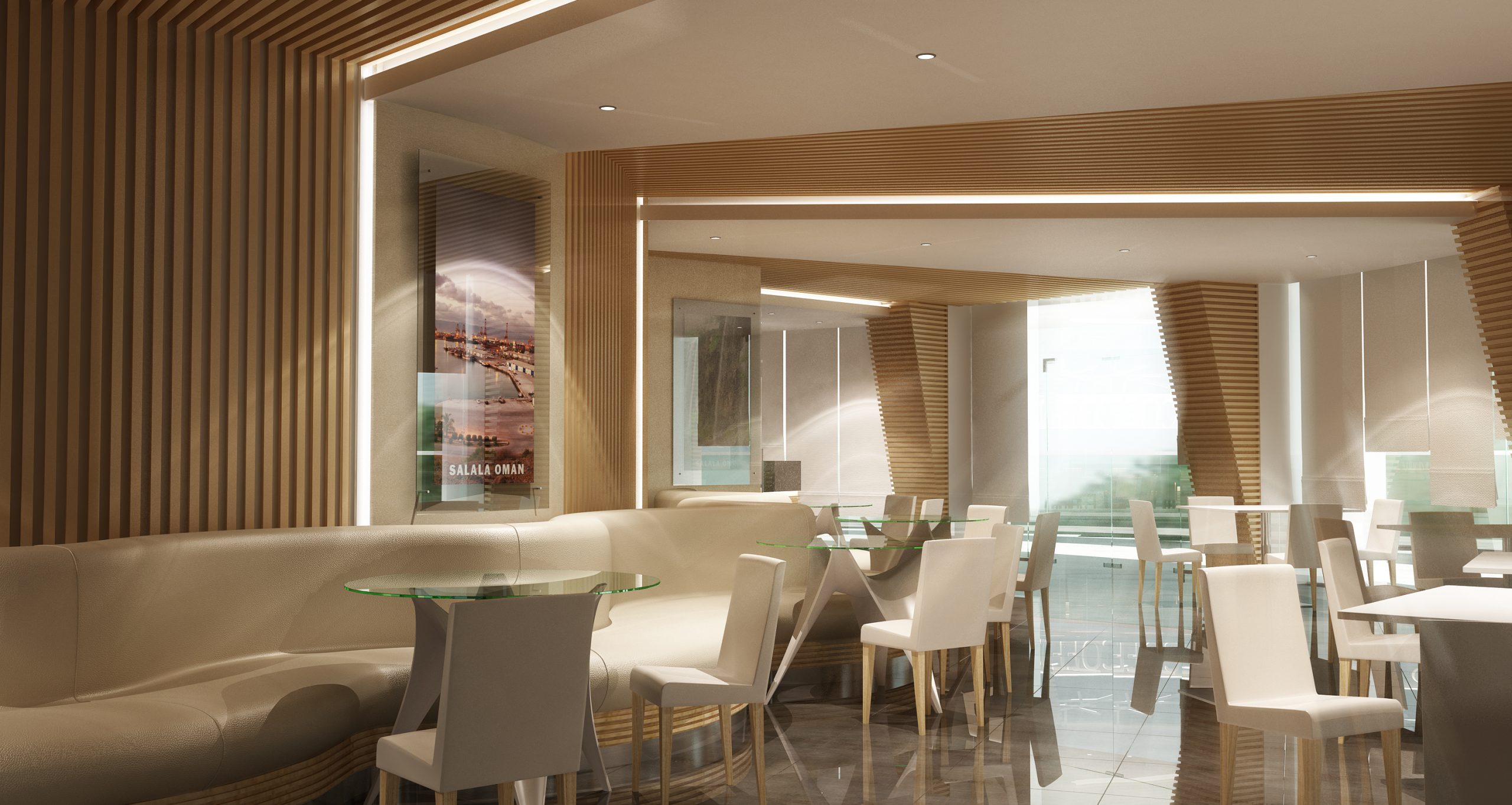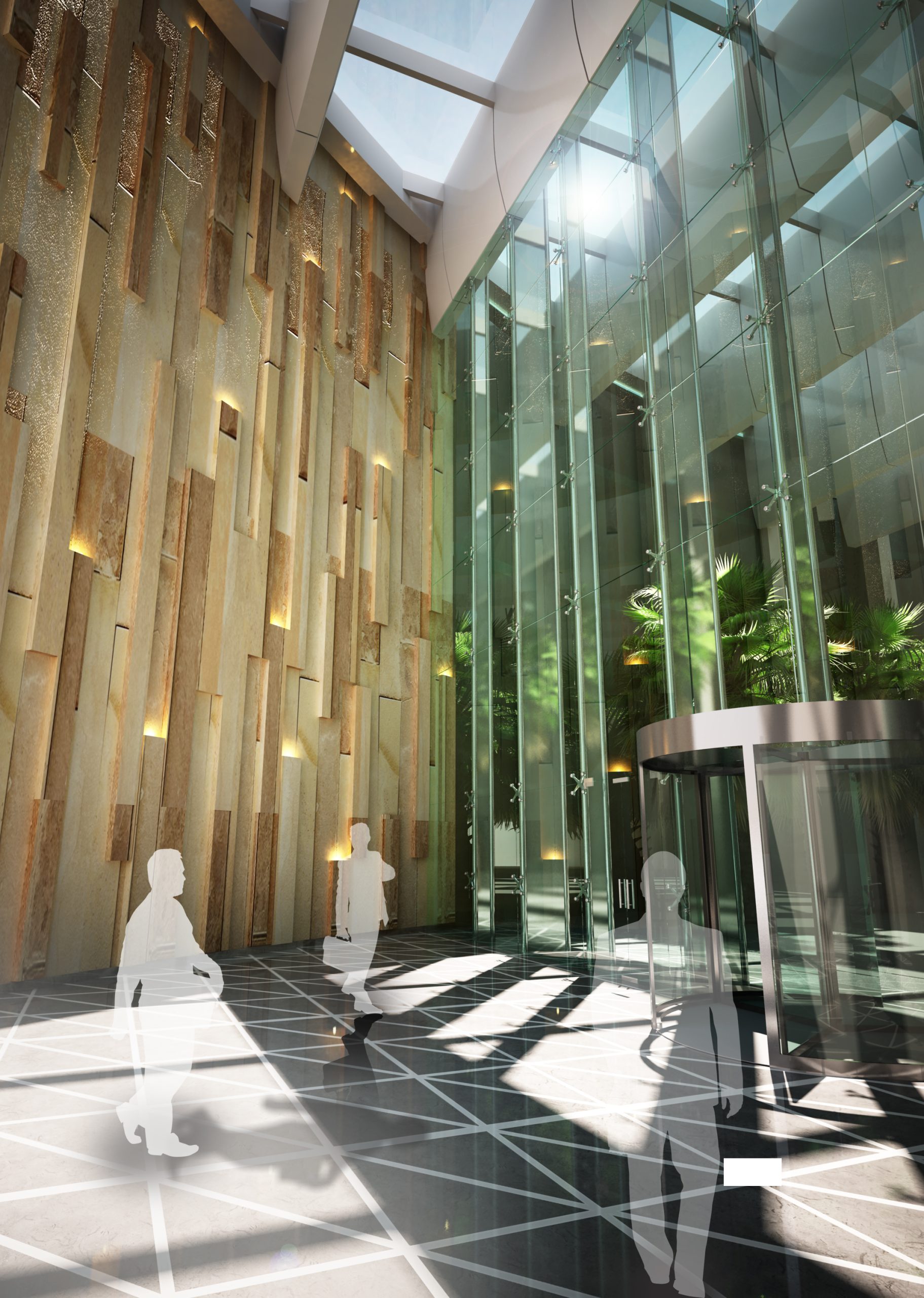 The proposed design reflects the heritage of the Sultanate of Oman, the synergy of the gulf, and the speed of the rapid modern evolution. The heritage is depicted in the use of raw materials and traditional Omani patterns. Vertical cladding on the walls reflects the strength and re-ability of the operation. Intersecting floor pattern suggests the concept of networking. The overall aspect of the proposed design suggests: “A promising growth which is generated by an equal opportunity network, brought together on solid ground.”